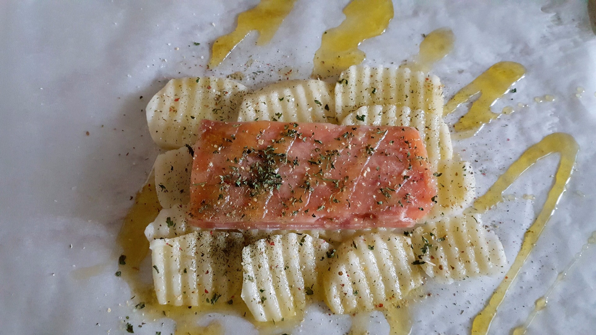 Impachetam in hartie de copt si punem la cuptor 30-35 minute la 160 grade.